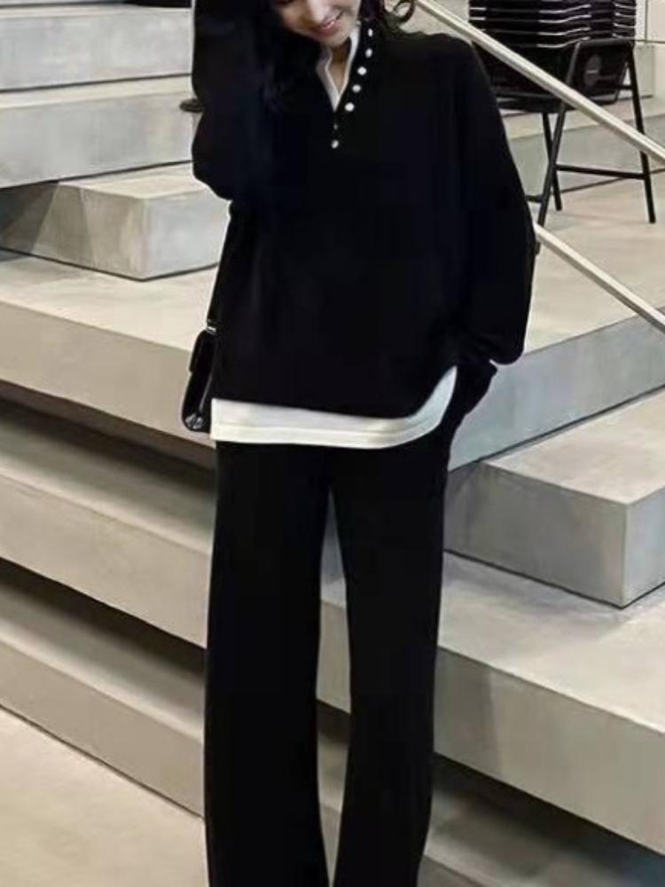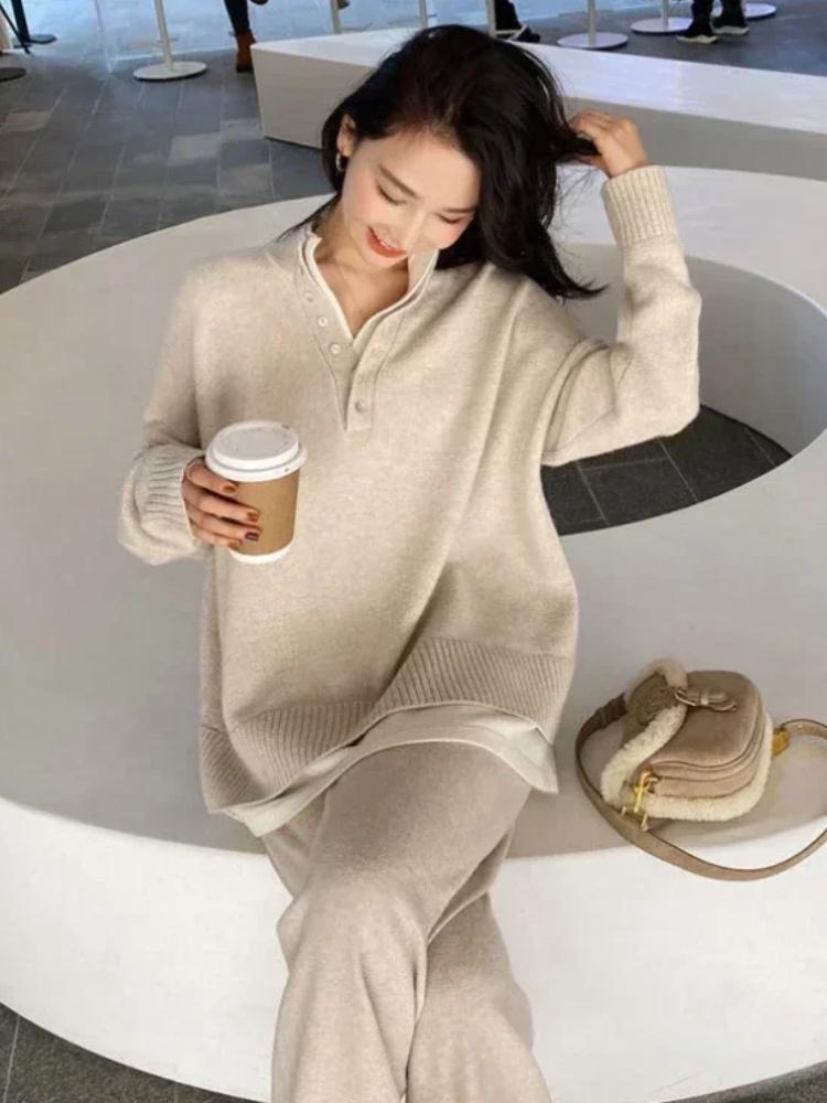 Зимний винтажный элегантный комплект из 2 предметов, женский лоскутный комплект Y2k, шикарные комплекты с брюками, женский корейский модный повседневный костюм-свитер в стиле ретро, 2024