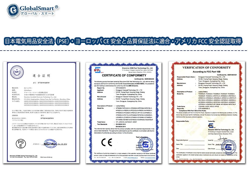 Вся наша продукция соответствует японским нормам PSE. (Закон о безопасности электроприборов и материалов), Европейский закон о безопасности CE и одобрение FCC США. уведомление: Перед покупкой вам необходимо будет подтвердить оригинальный номер модели вашего компьютера.