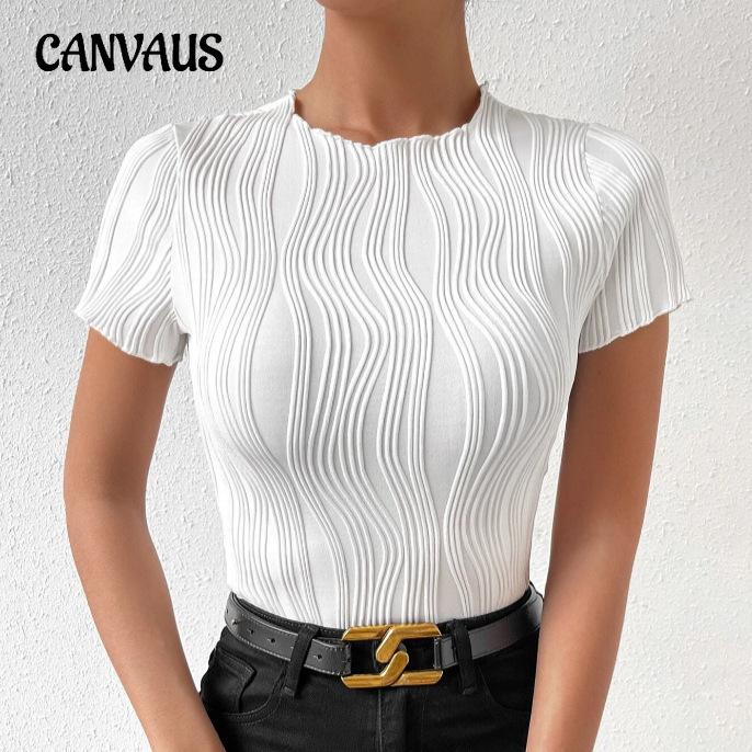 Весенне-летняя женская футболка с круглым вырезом и коротким рукавом, однотонная, тонкая, с нерегулярными вертикальными полосками — купить товар онлайн с бесплатной доставкой по всему миру!