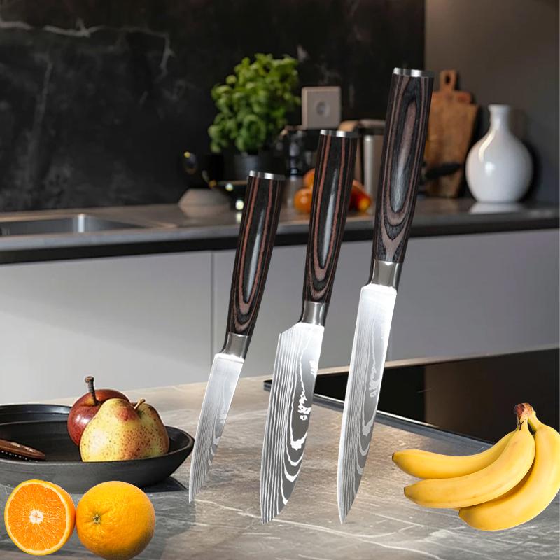 Трехсекционный поварской нож Кухонный нож Столовый нож 7cr17 Нержавеющая сталь Кухонный нож Нож для очистки овощей