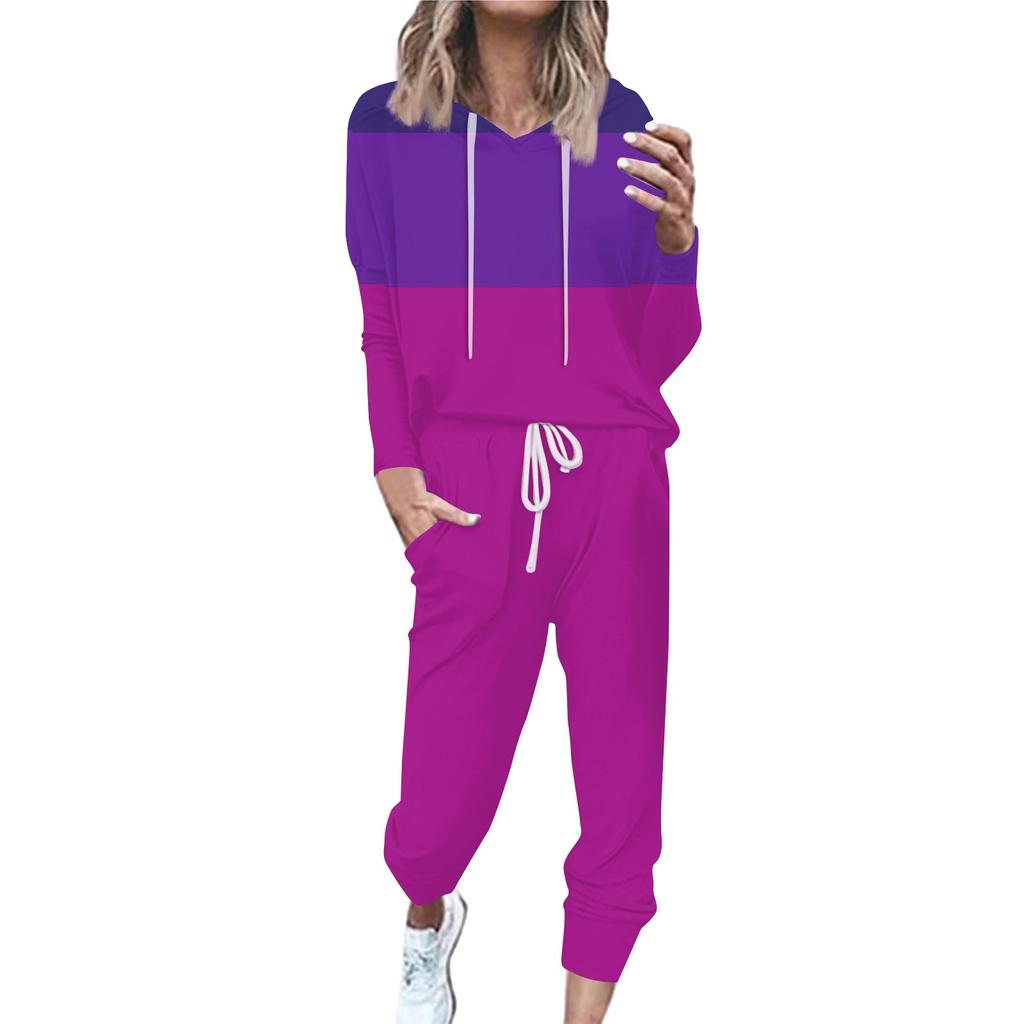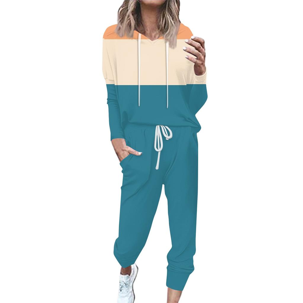 Женский полосатый спортивный костюм из 2 предметов, удобная толстовка с капюшоном, спортивные штаны для занятий йогой и тренировкой