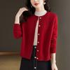 Весенне-осенний женский вязаный кардиган с круглым вырезом, свободный модный вязаный свитер, топ для женщин