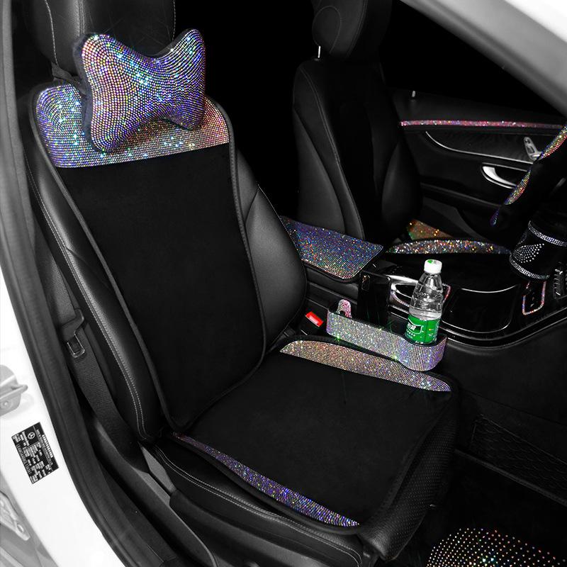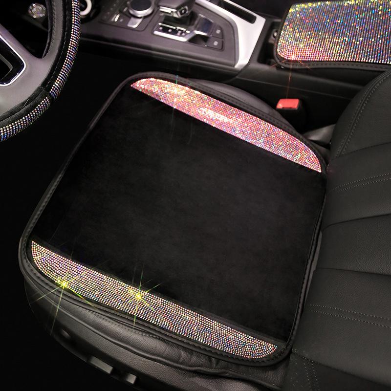 Универсальная подушка для сиденья с бриллиантами, белые цветные стразы, передняя и задняя спинка, коврик, плюшевый теплый защитный коврик, автомобильные аксессуары