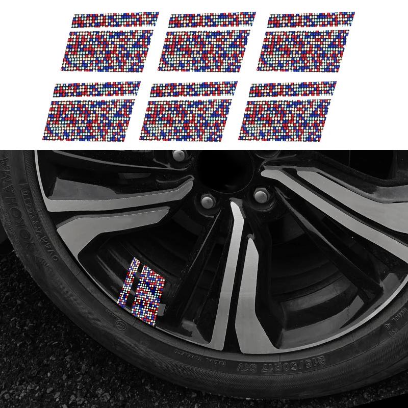 6 шт. светоотражающих наклеек на обод колеса автомобиля, наклейки на ступицу гоночного колеса Mark Stripe размером 18" - 21" со стразами