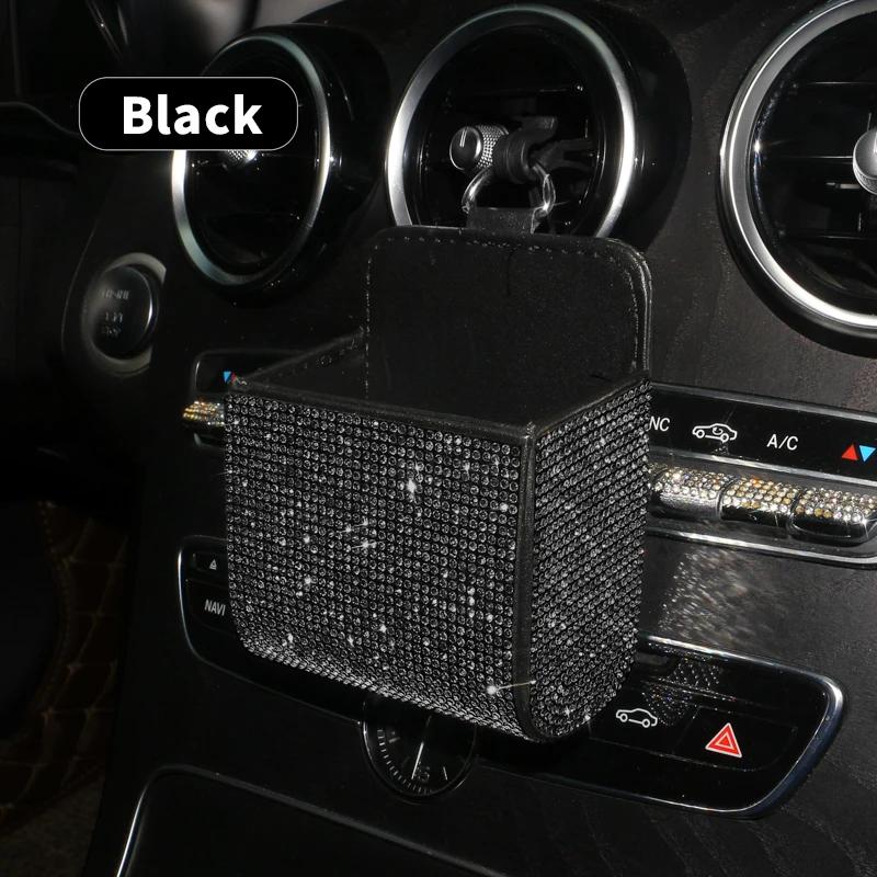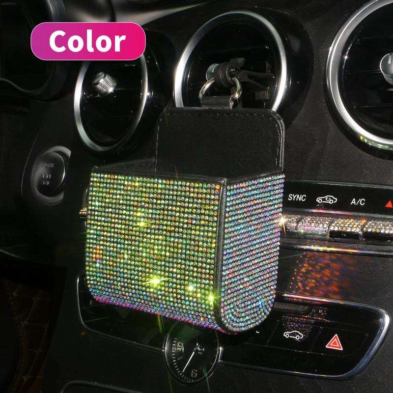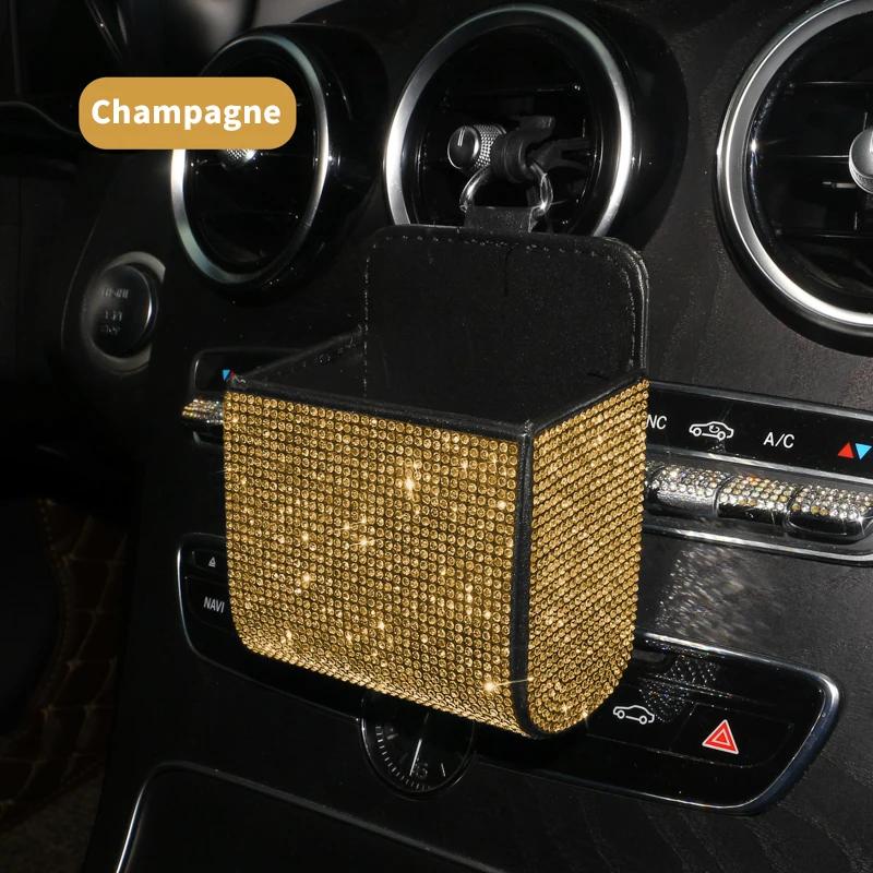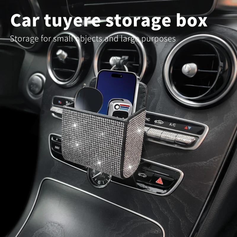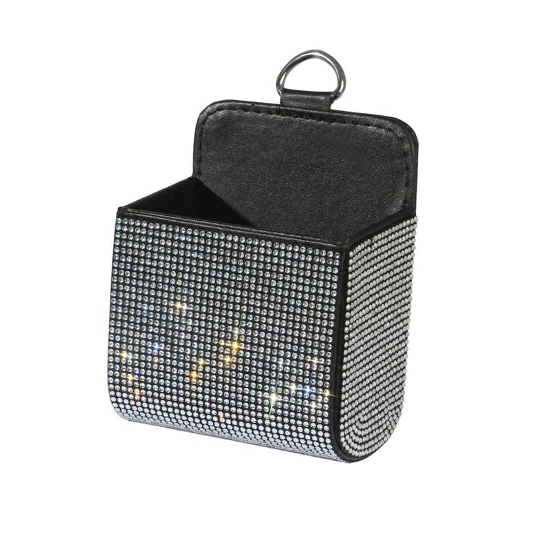 Автомобильный ящик для хранения вещей, инкрустированный бриллиантами, для хранения розетки кондиционера автомобиля, многофункциональная кожаная сумка с бриллиантами, автомобильные аксессуары
