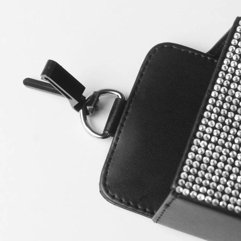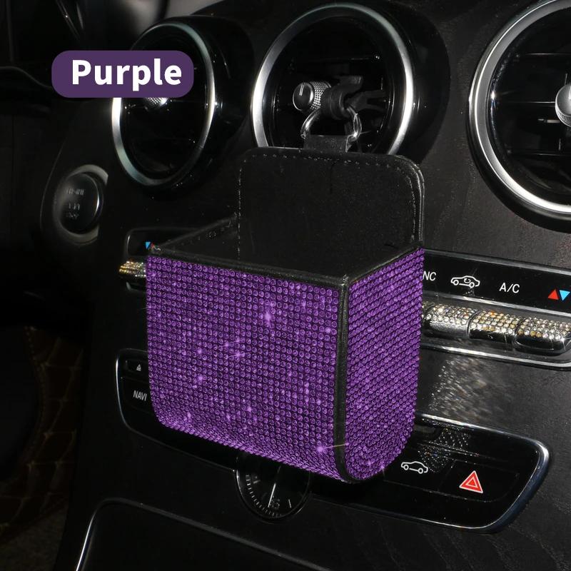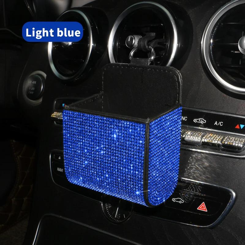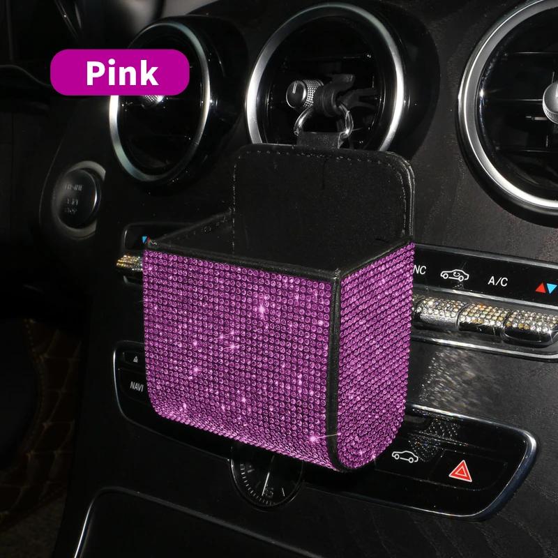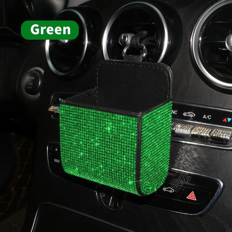 Автомобильный ящик для хранения вещей, инкрустированный бриллиантами, для хранения розетки кондиционера автомобиля, многофункциональная кожаная сумка с бриллиантами, автомобильные аксессуары