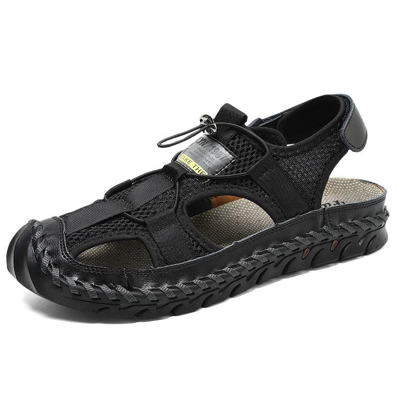 Новые мужские сандалии кожаные с сумкой на голову большого размера пляжная обувь удобная сетчатая повседневная обувь