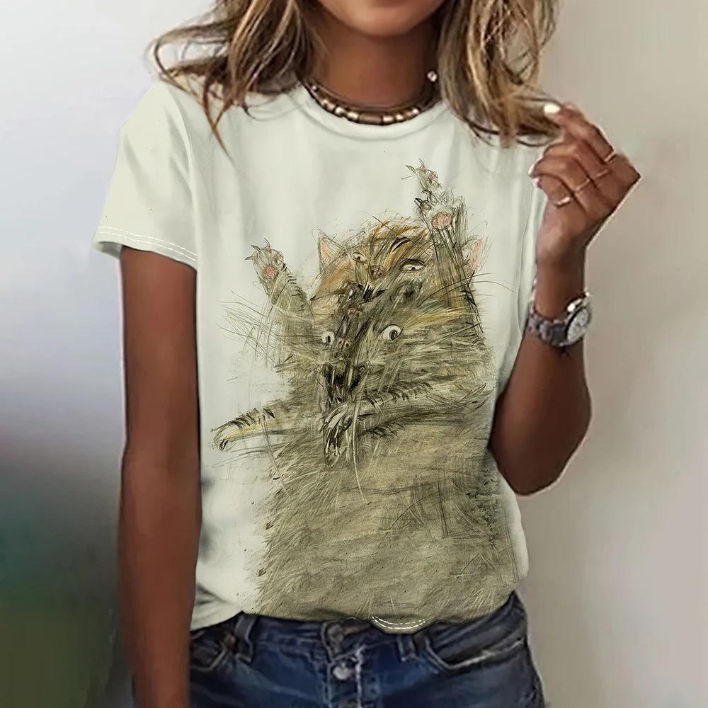 Веселые женские футболки с рисунком животных, повседневная верхняя одежда с короткими рукавами, женская летняя футболка с 3D-принтом