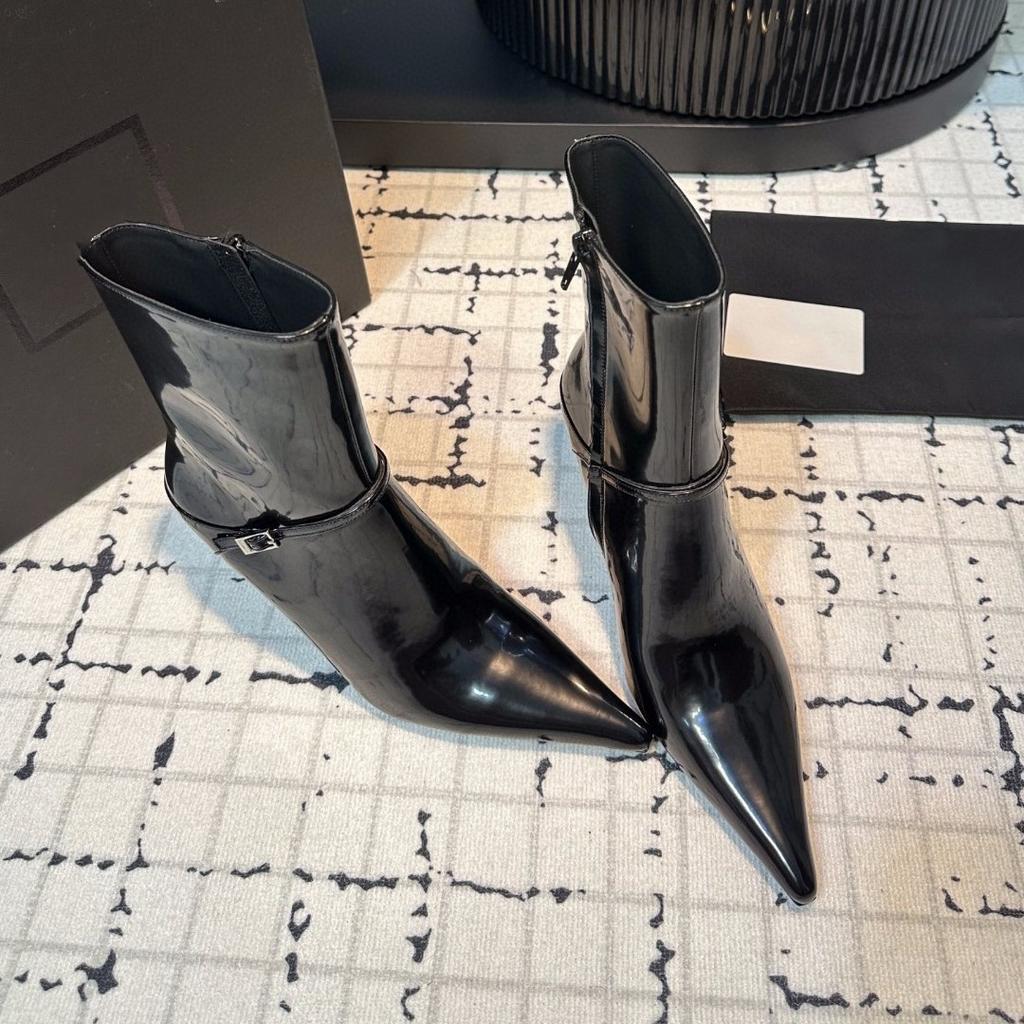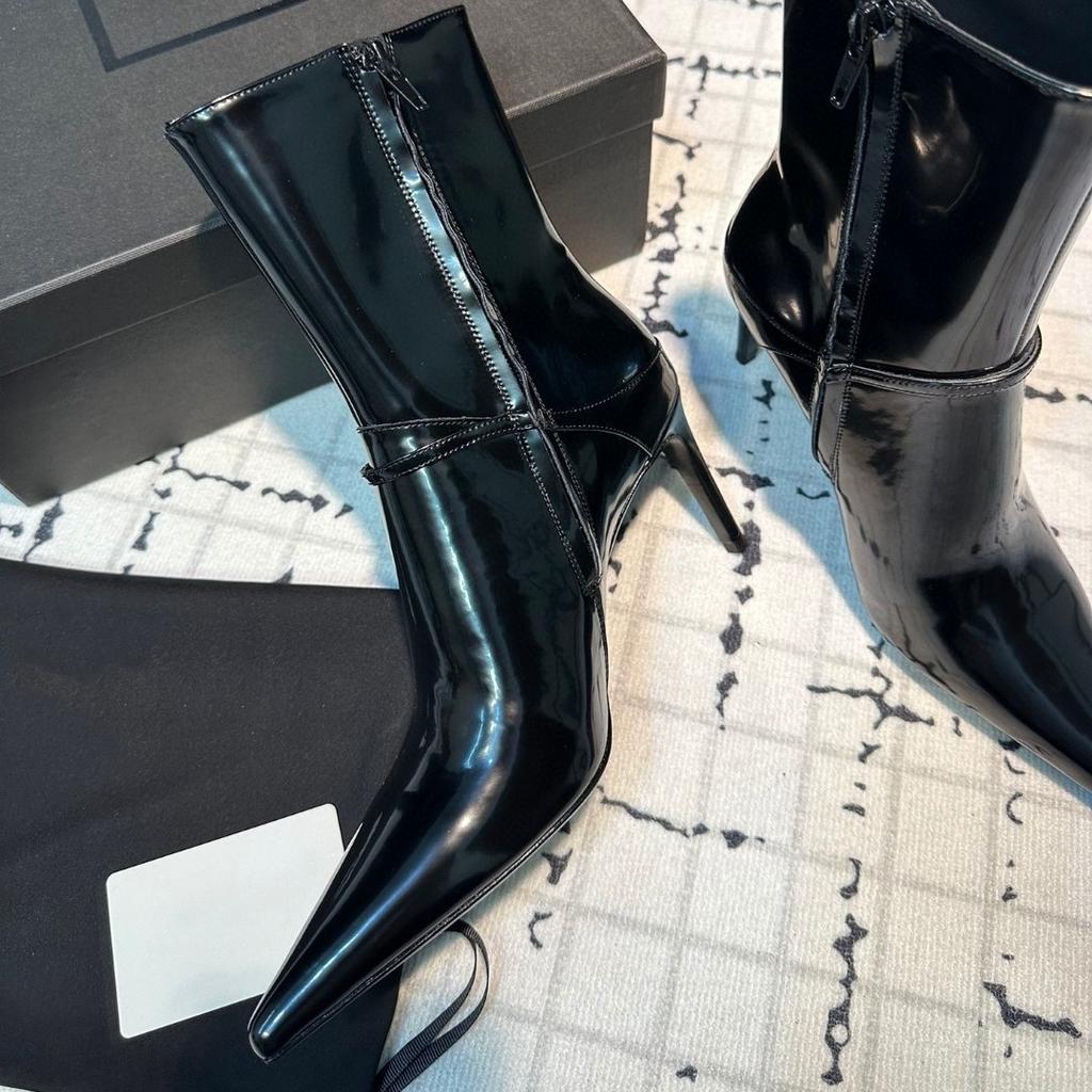 2024 новые модные короткие сапоги на очень высоком каблуке с острым носком, женские кожаные сапоги с металлической пряжкой, сексуальные, с тонким каблуком, с боковой молнией
