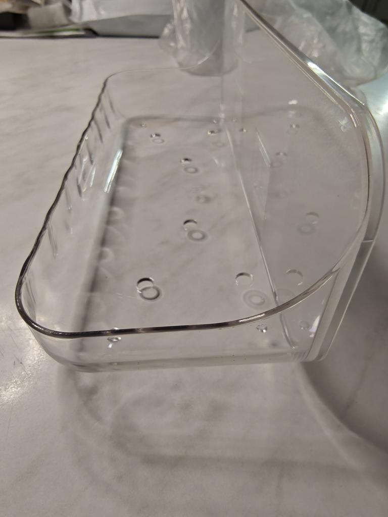 Заказ доставлен за месяц. Описанию и рекламным фото соответствует. Хорошая маленькая полка (как мыльница) из прозрачного акрила с самоклеющимся креплением в комплекте. Сделана аккуратно и качественно. Покупал за 149₽.