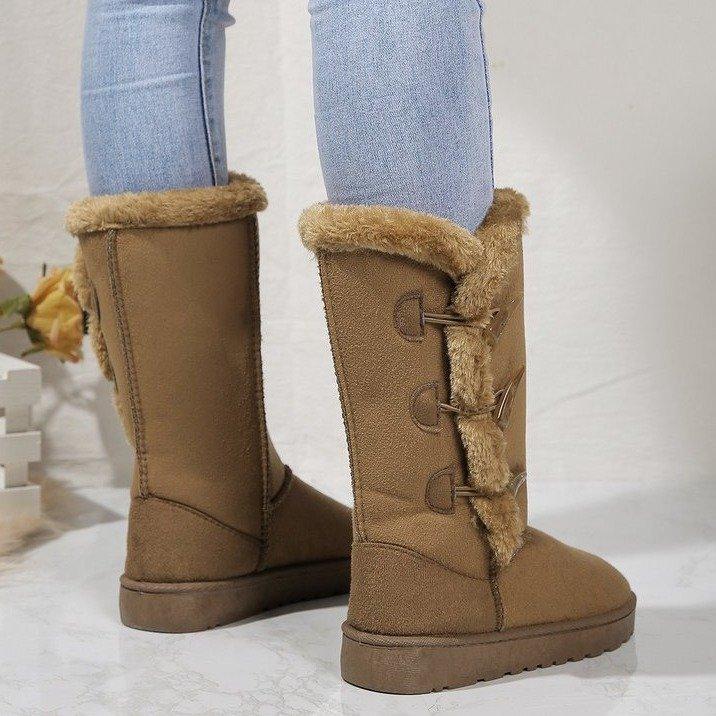 Осенние и зимние длинные зимние сапоги, модные женские меховые утолщенные и бархатные термоботинки из хлопка, зимние сапоги из хлопка на толстой подошве