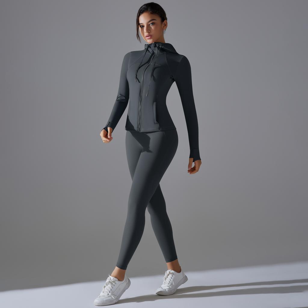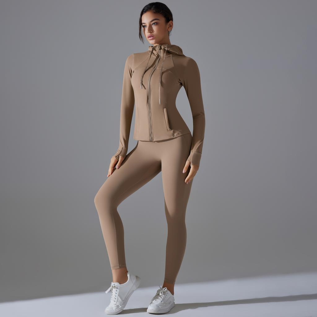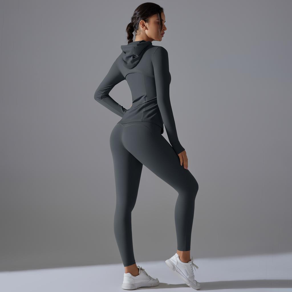 Auroth Zipper Длинный рукав Йога Костюм Женская Тренировочная Одежда Футболки Для Спорта Push Up Фитнес Леггинсы Спортивная Одежда