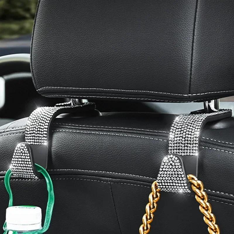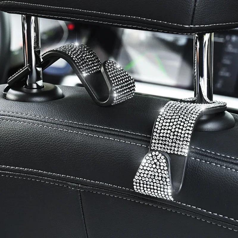 1/2 шт., подголовник для спинки сиденья автомобиля, блестящая алмазная вешалка для хранения на заднем сиденье, органайзер, универсальные зажимы для крепления, аксессуары для салона автомобиля