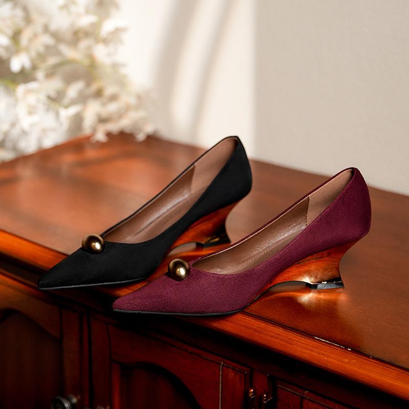 1828-17 Французские металлические кашемировые туфли с заостренным носком и неглубоким скошенным каблуком женские туфли 2024 года осень-зима новые туфли для поездок на работу на высоком каблуке