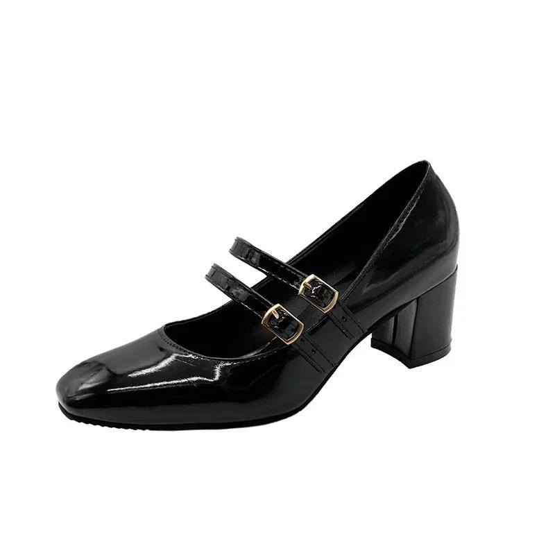 2024 Весна Осень Женские Туфли С Двойной Пряжкой Кожаные Квадратные Туфли Квадратный Каблук Однотонные Женские Туфли