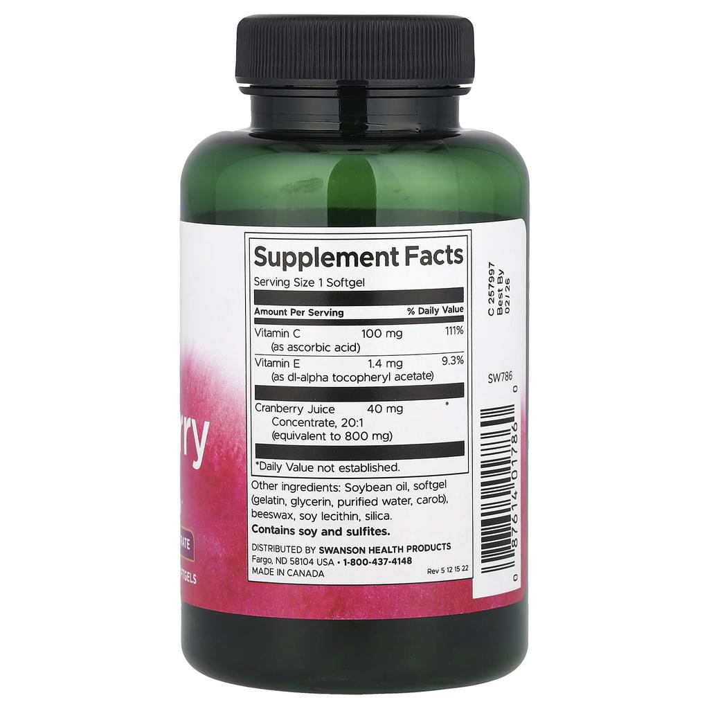 Swanson, Клюква, 180 мягких капсул