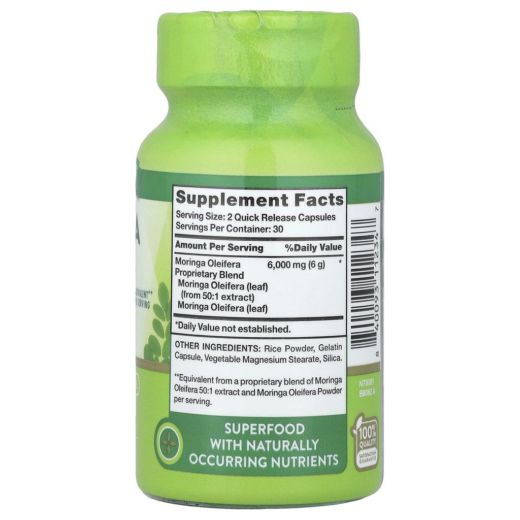 Nature's Truth, Moringa Oleifera, 6000 мг, 60 капсул с быстрым высвобождением (3000 мг на капсулу)