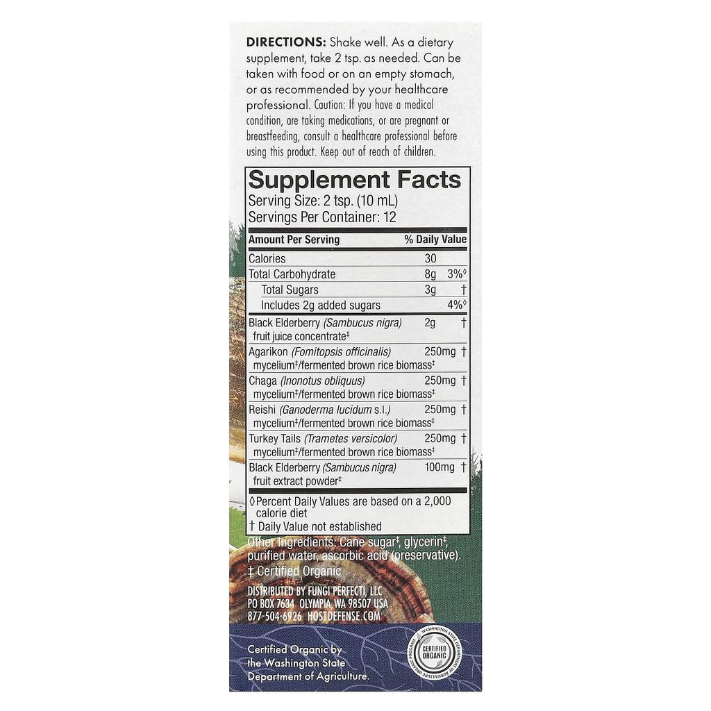 Host Defense, Mushrooms™, сироп с бузиной, 4 жидких унции (120 мл)