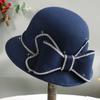 Осенне-зимняя женская шапка-бини ручной работы из чистой шерсти с большим бантом, элегантная и универсальная, маленькая шапка-тазик с подвернутым краем для женщин