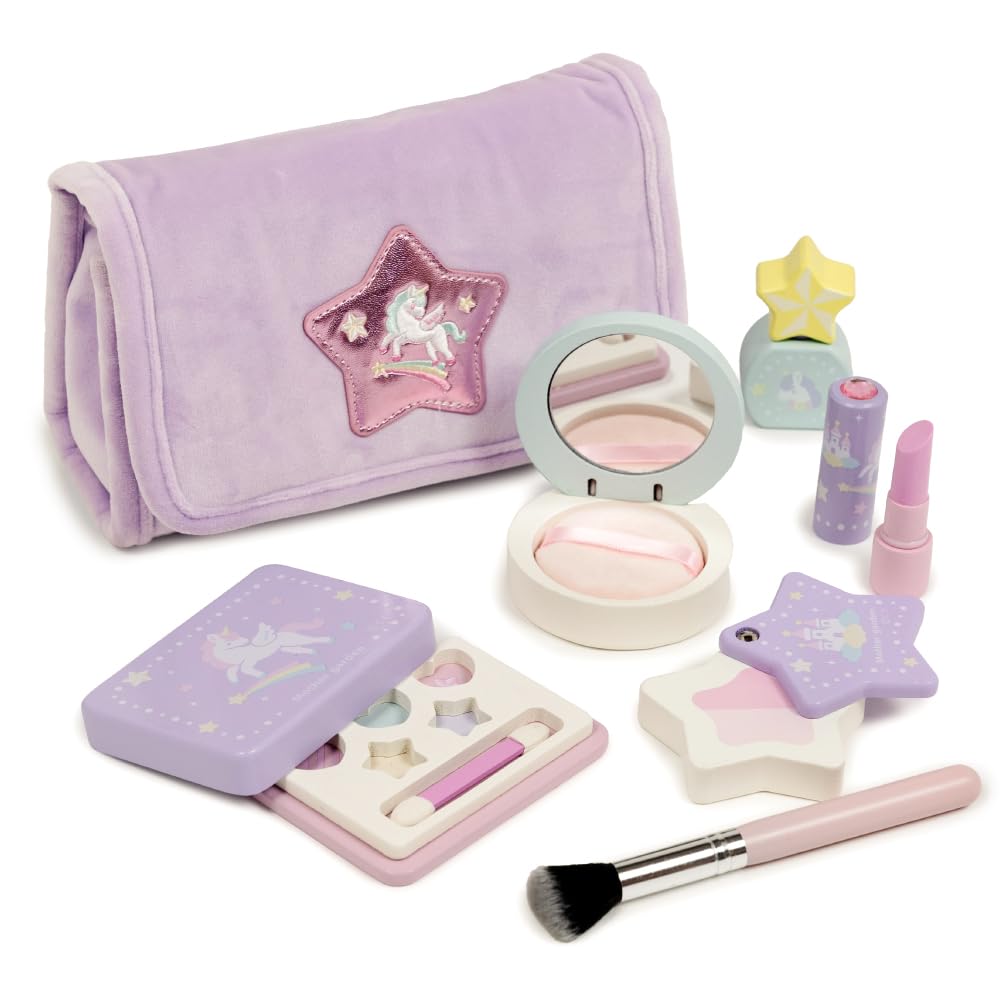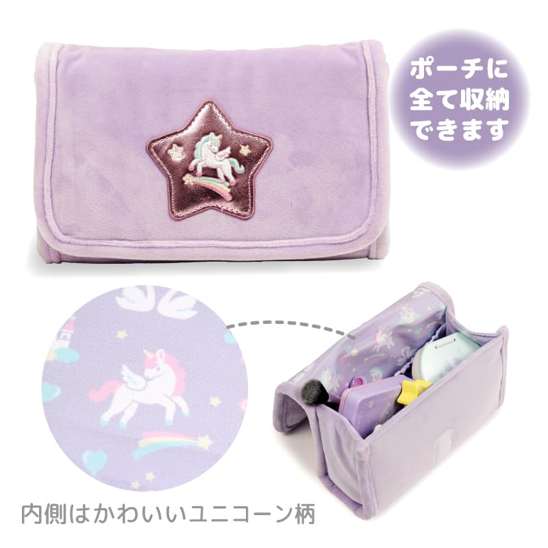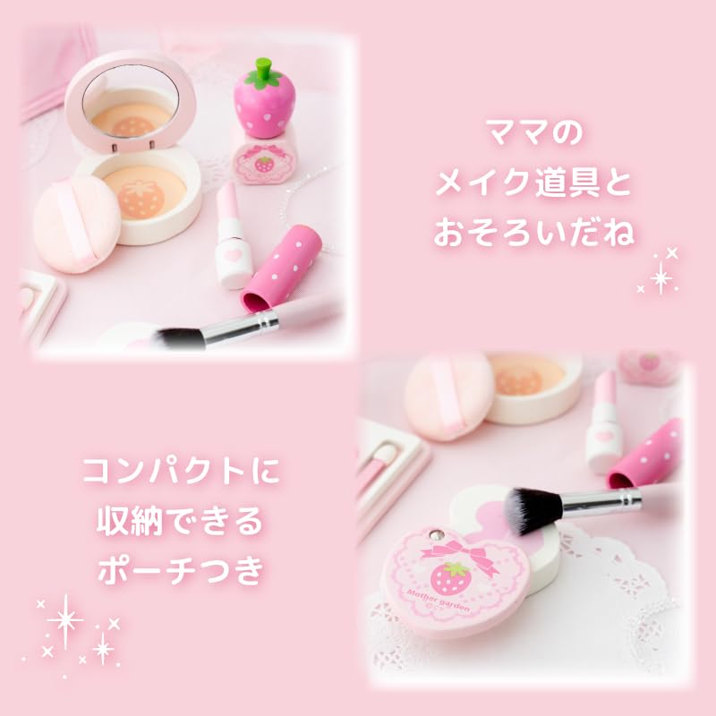 В сумочке находятся обычные инструменты для макияжа. Деревянный игровой домик, в котором можно почувствовать тепло.