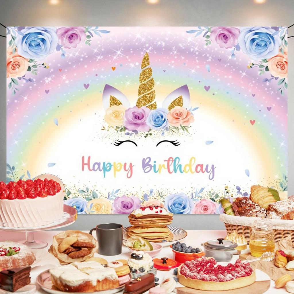 Гобелен на день рождения единорога Украшение на день рождения единорога Фотоплакат на день рождения Фон для фото на день рождения единорога С днем рождения Стильный гобелен на день рождения