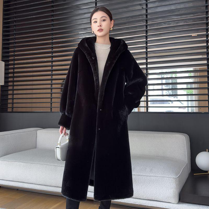 2024 зима новая бархатная норковая шуба женская цельная норковая экологически чистая норковая шуба длинная