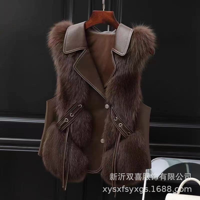 Меховая куртка осень-зима новая теплая повседневная сращивание женская имитация меха лисы жилет жилет