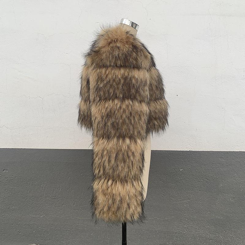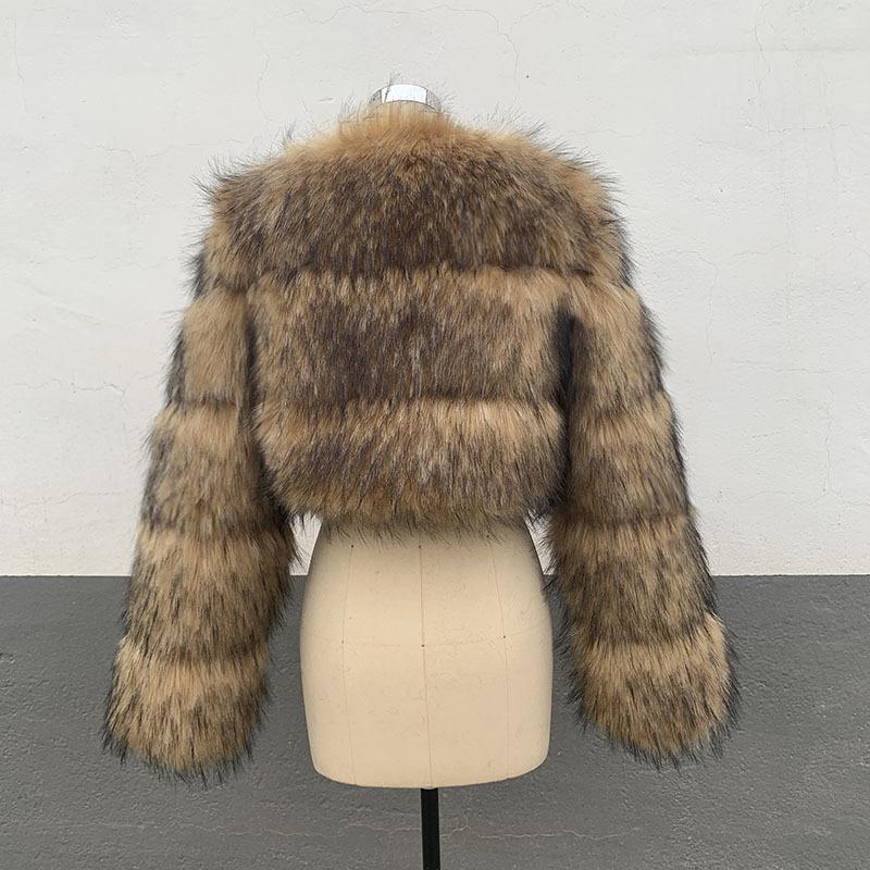 Пальто из искусственного меха енота зимнее женское с круглым вырезом теплое новое шуба