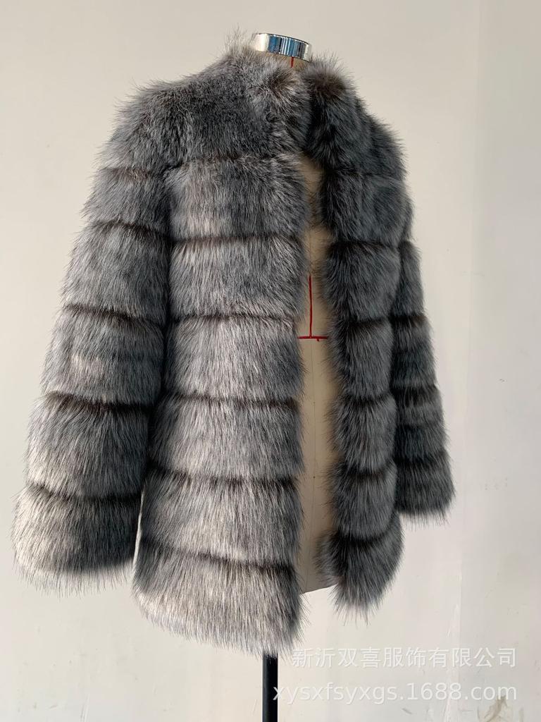 Меховая осень и зима новая шуба с воротником-стойкой средняя и длинная корейская версия облегающая теплая шуба из искусственного меха лисы