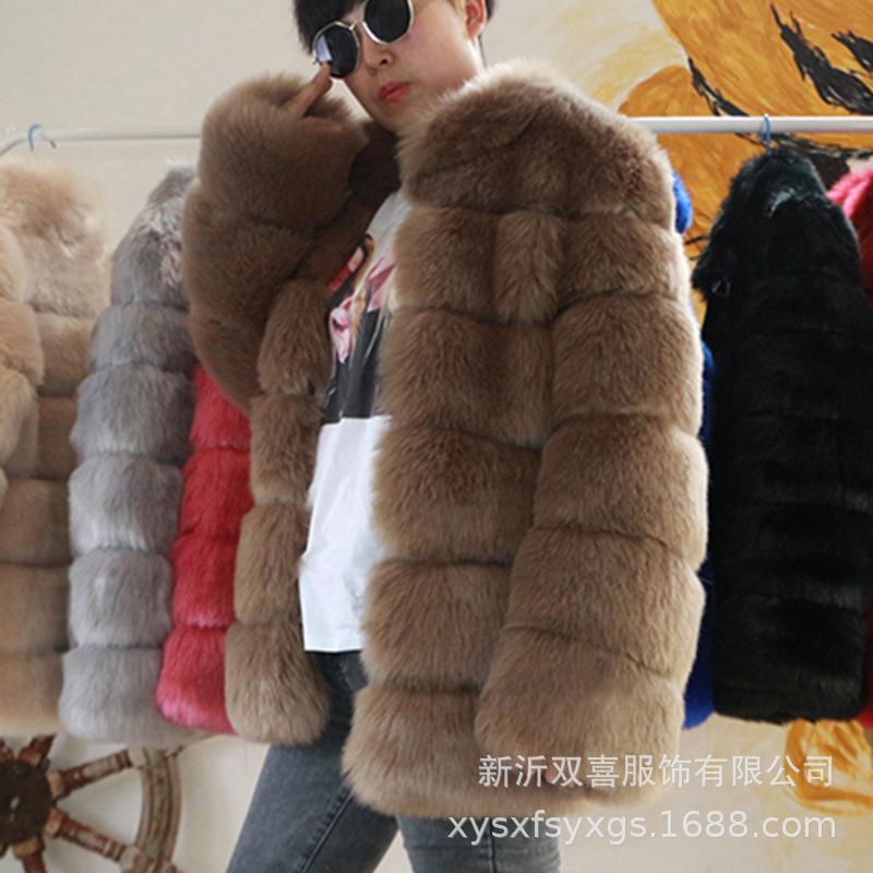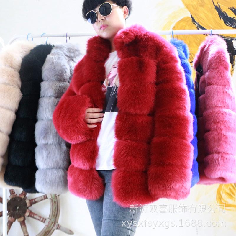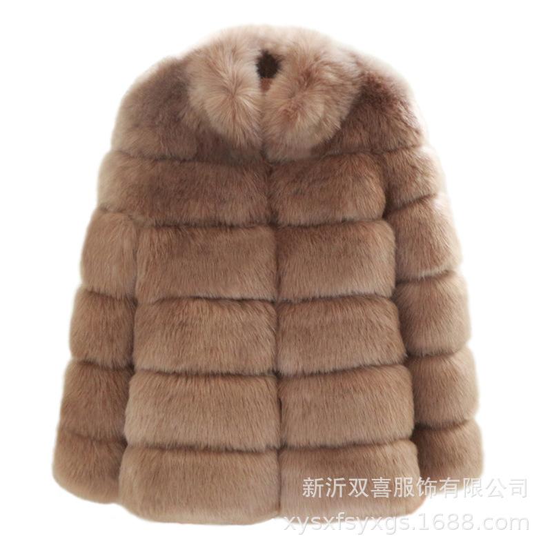 Пальто осень-зима новое воротник-стойка искусственное меховое пальто женское среднее и длинное повседневное теплое искусственное меховое пальто из лисы