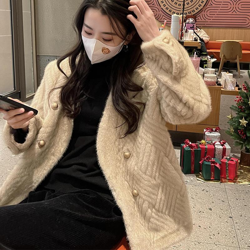 Женская зимняя шуба из искусственного меха норки с интегрированным мехом и V-образным вырезом, двубортное плюшевое пальто — купить товар онлайн с бесплатной доставкой до всему миру!
