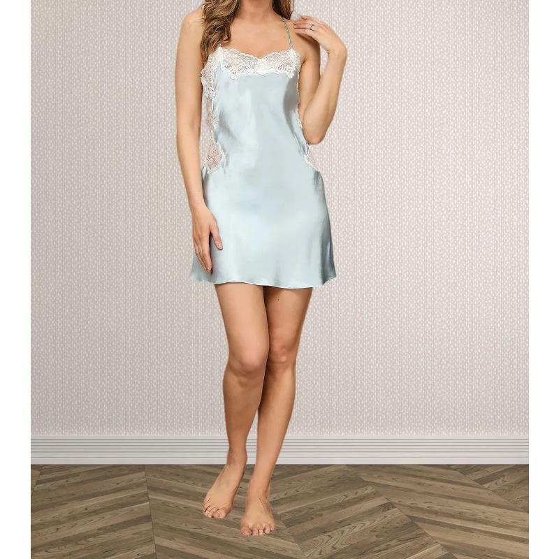 Чистый шелк спинка слип ночная рубашка крест-накрест на спине платье для сна сексуальные женские платья для сна шелковая ночная рубашка на тонких бретельках