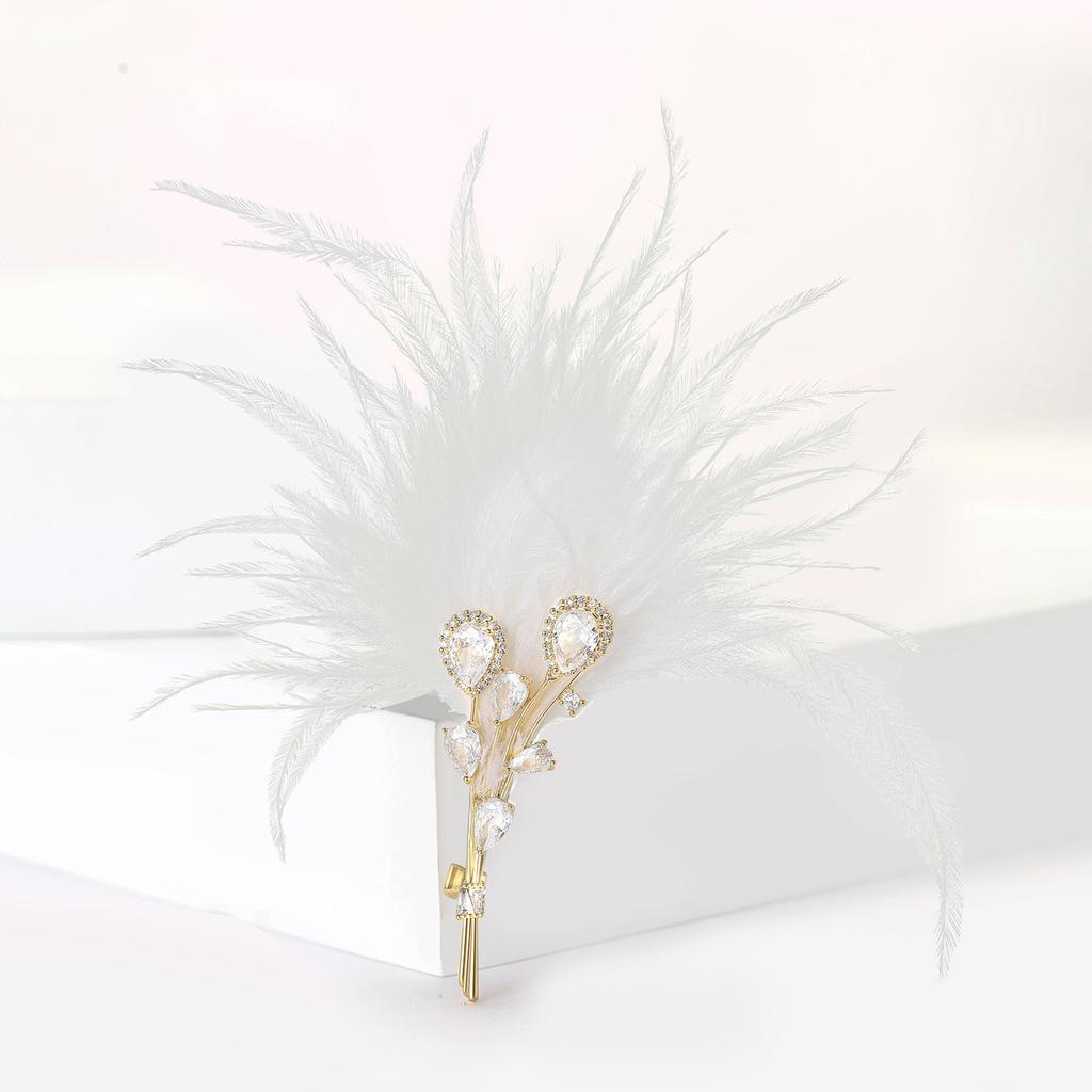 Творческая личность Медный циркон Перо Букет Брошь Изысканная Универсальная Женская Одежда Брошь Украшение Булавка