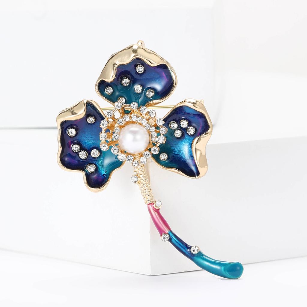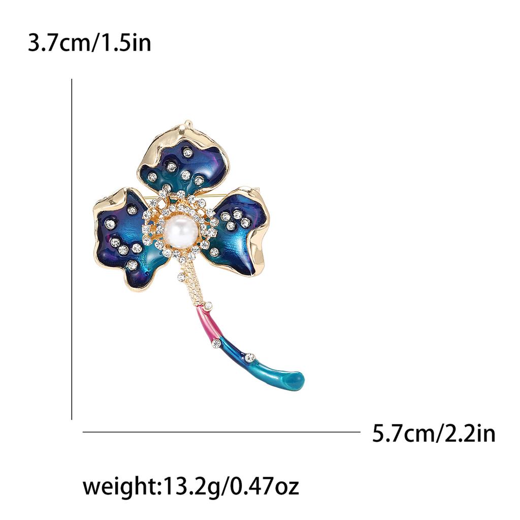 Delicate Alloy Enamel Rhinestone Clover Flower Brooch Elegant Versatile Women'S Clothing Corsage Ornament Pin