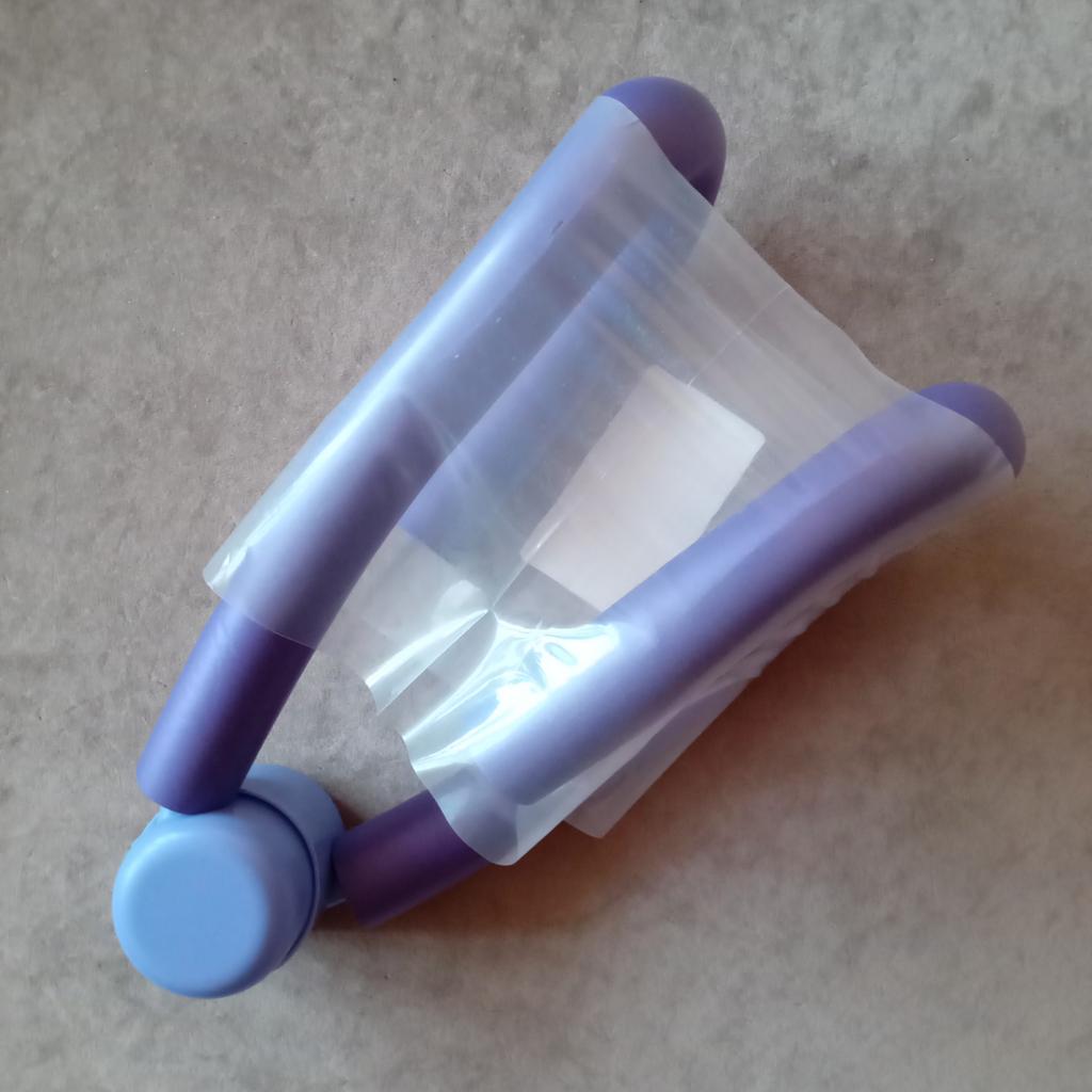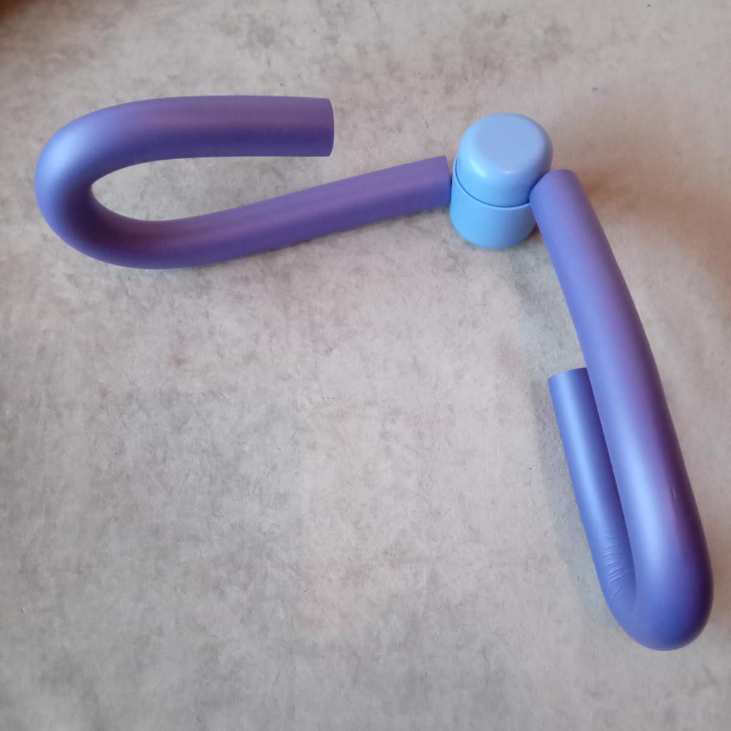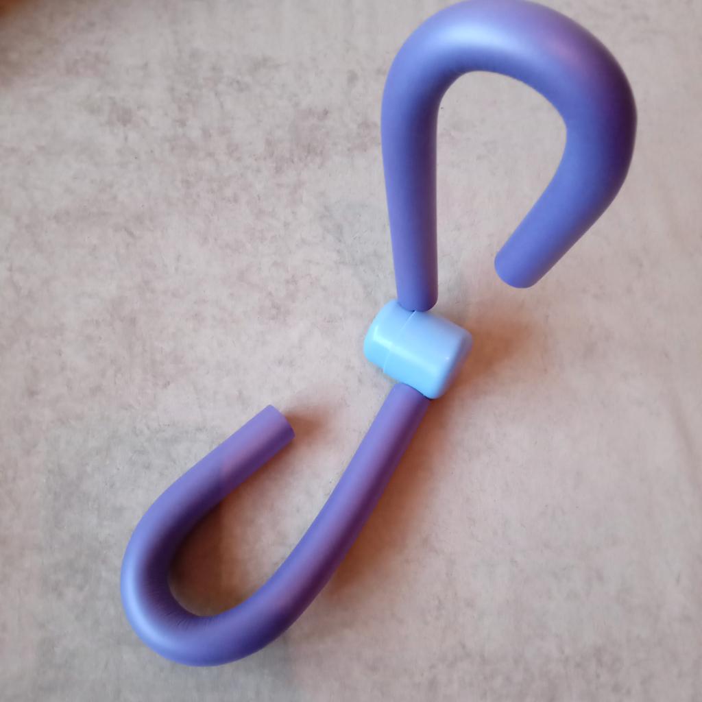 Небольшой тренажёр, эспандер или что-то в таком роде для тренировок. Можно качать руки или ноги. Тренажёр достаточно упругий, что бы свести концы тренажёра требуется усилие. Вот на эти загогулины по сторонам тренажёра надеты мягкие чехлы. В общем поживем - увидим. Потренируемся - посмотрим. Продавцу спасибо.