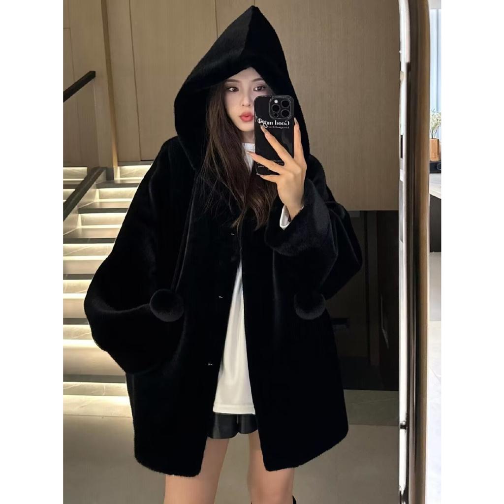 Женское пальто из искусственного норкового меха с капюшоном, зимнее новое модное повседневное теплое пальто