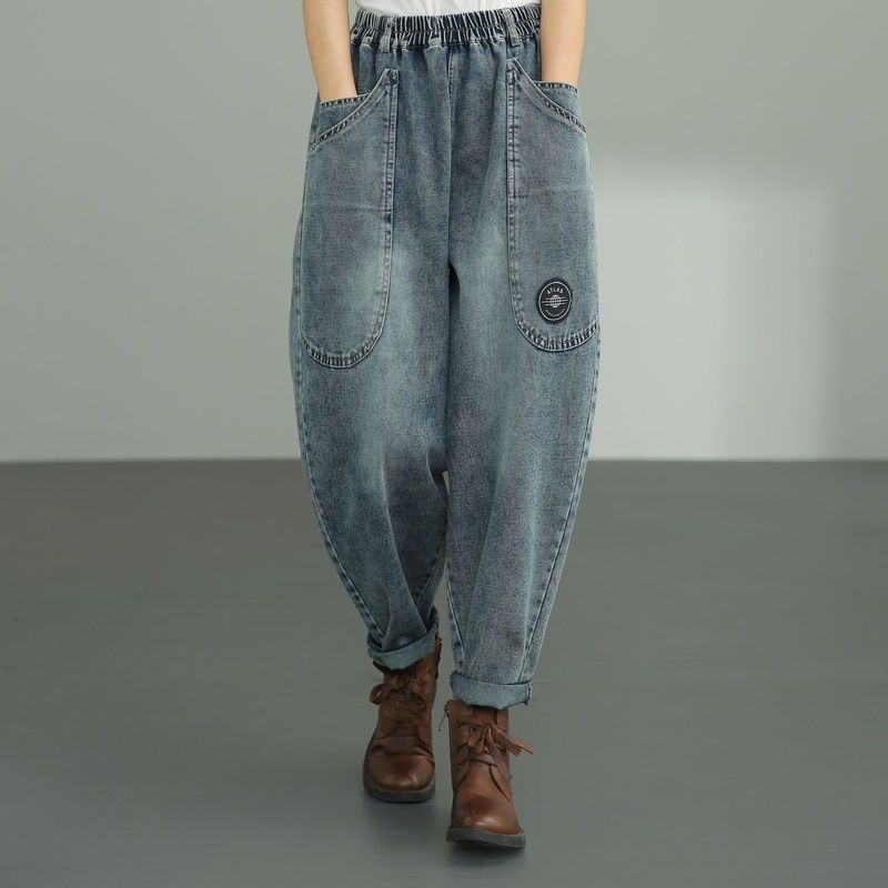 WTEMPO Женские джинсы, новый стиль, брюки Harun, эластичный пояс, свободные, однотонные, большой карман, повседневные