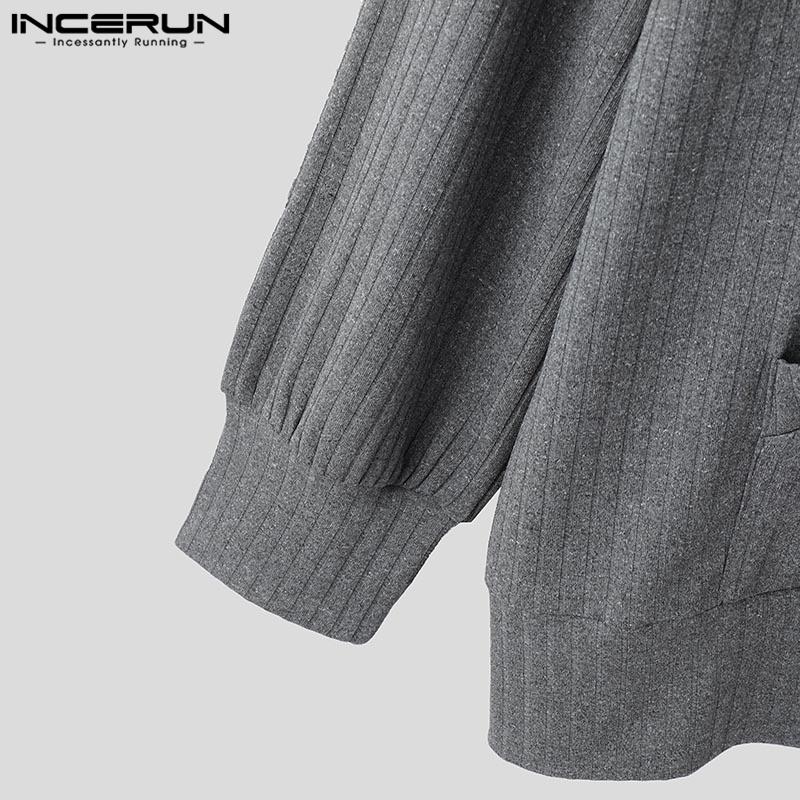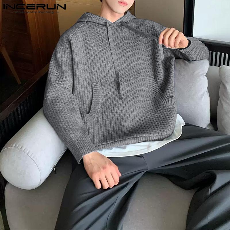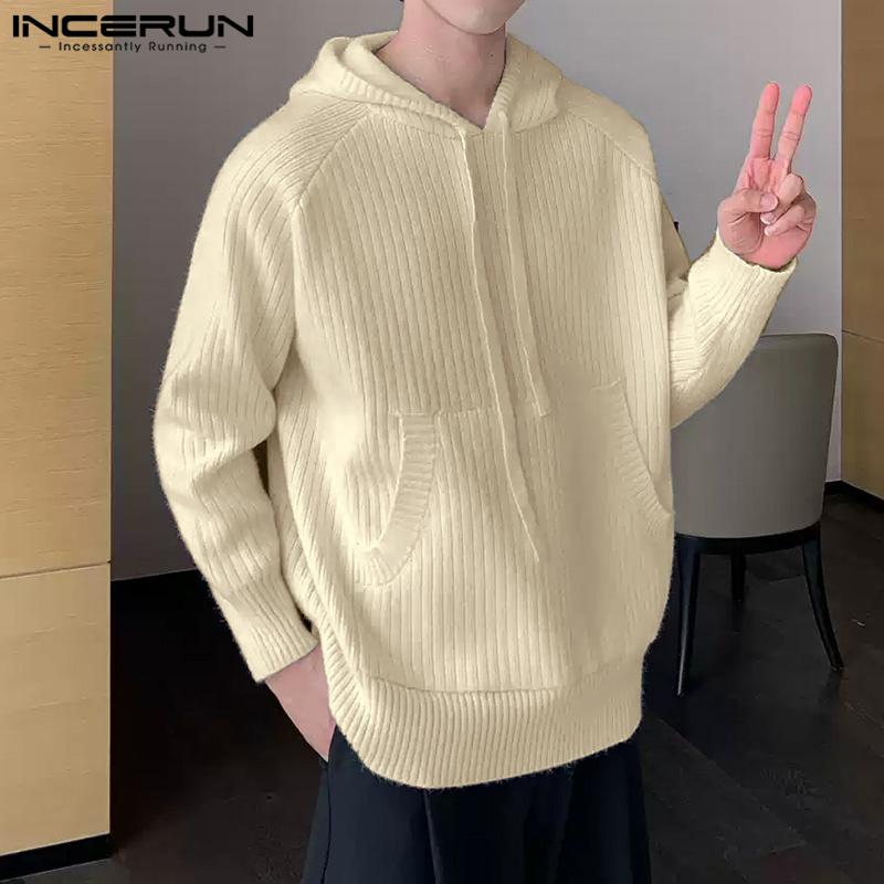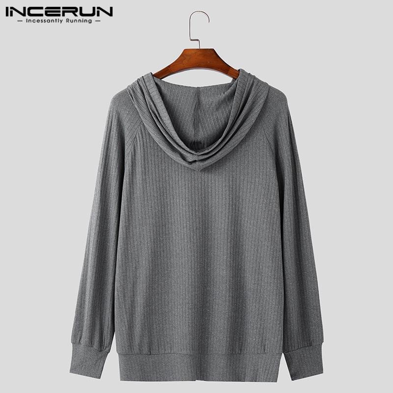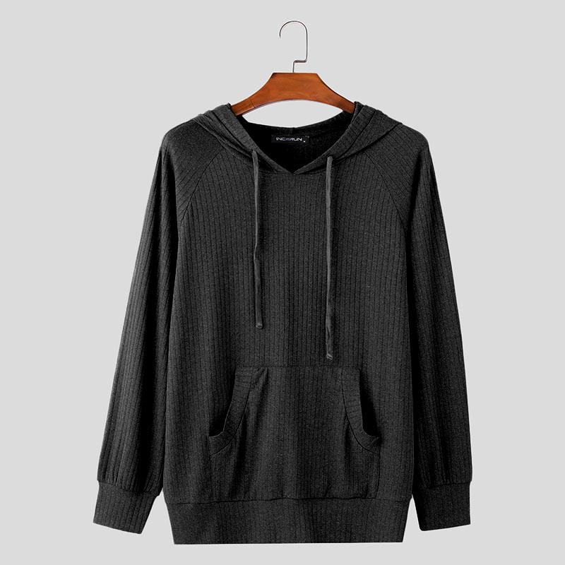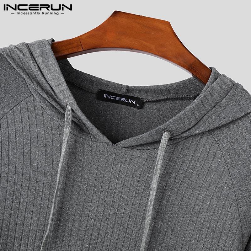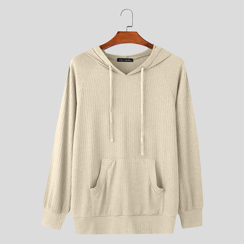 INCERUN Pring Men Длинные рукава Полосатый Риб Свободные пуловеры с капюшоном