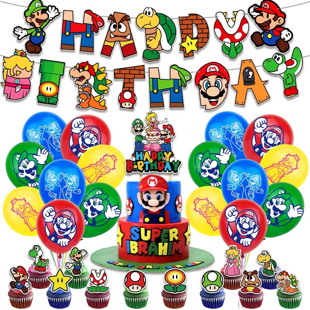 Супер Марио День рождения Украшения Праздничный набор Милый персонаж Игра Аниме Дети Мальчики Девочки Красный Желтый Синий С днем рождения Гирлянда Баннер Воздушный шар Воздушный шар