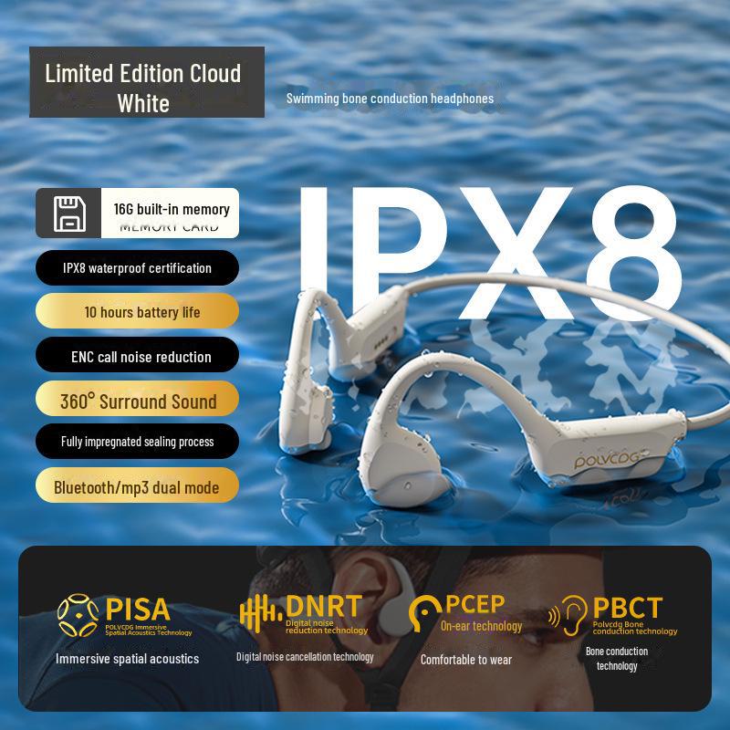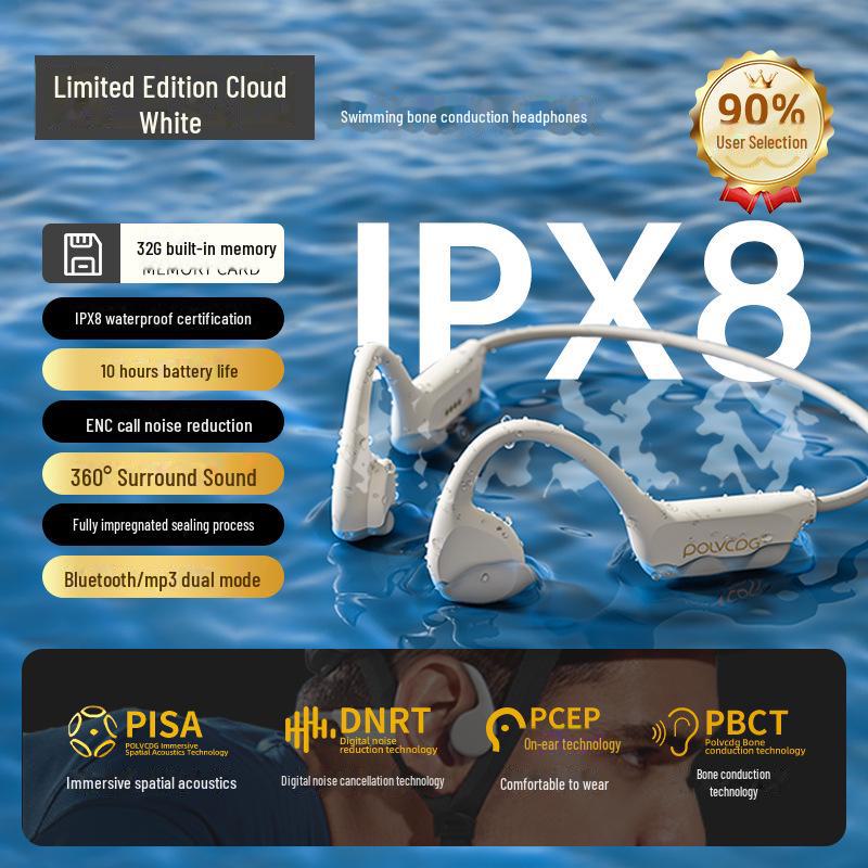 Водонепроницаемые спортивные наушники Platinum X7 Bone Conduction Bluetooth 2024 — беспроводные, без вкладышей для плавания и бега