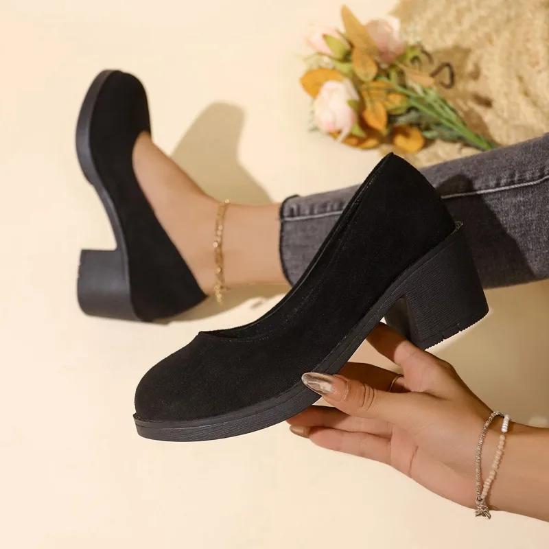 Новинка 2024 года, весенне-осенняя модная женская обувь с пряжкой на толстом каблуке, пикантные туфли с приподнятой спинкой и неглубоким открытым носком