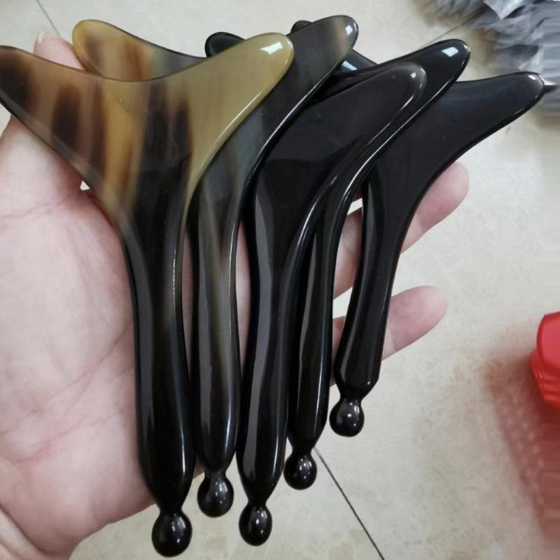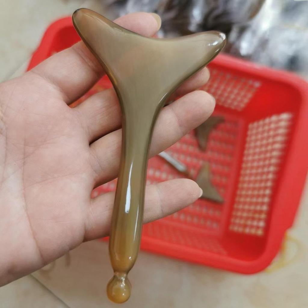 Акупунктурная палочка-скребок «Рыбий хвост» с цветочным и точечным дизайном для массажа лица и шеи