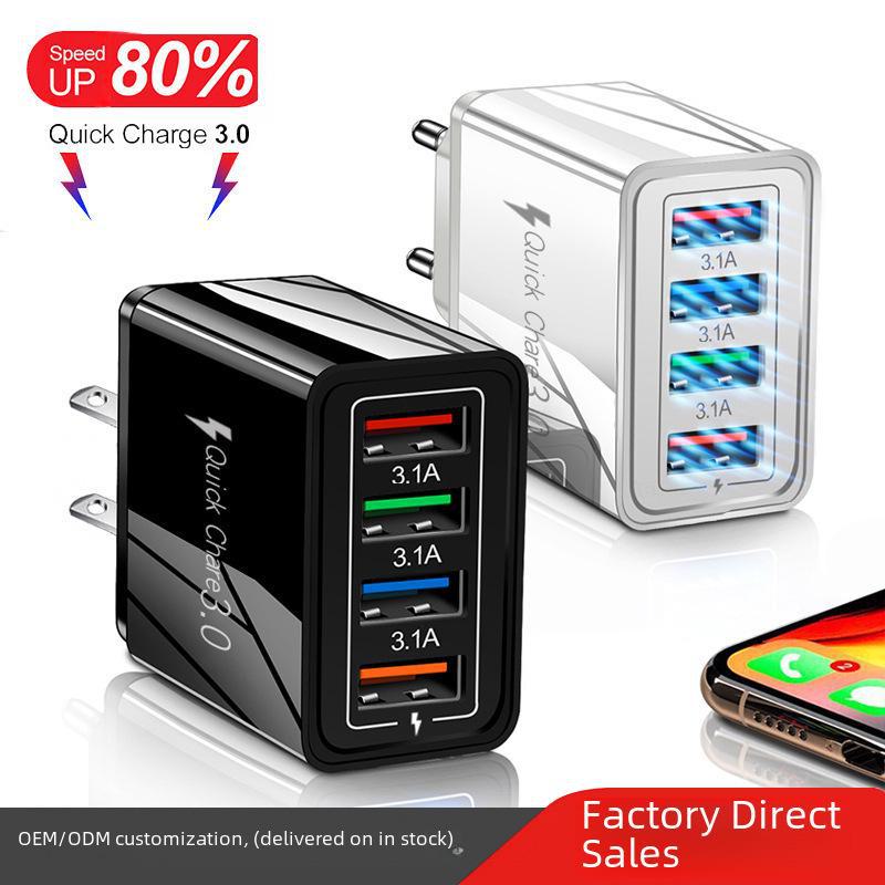 Зарядное устройство USB на 4 порта 3A со светодиодной подсветкой для мобильных телефонов и планшетов (Стандарт ЕС/США)