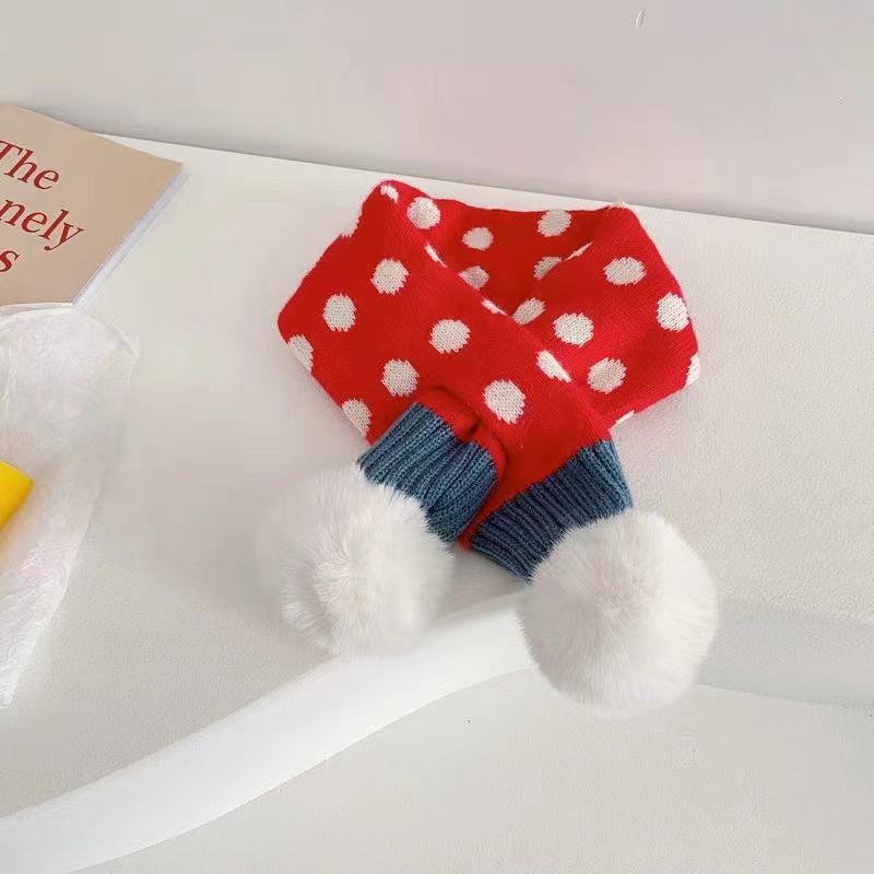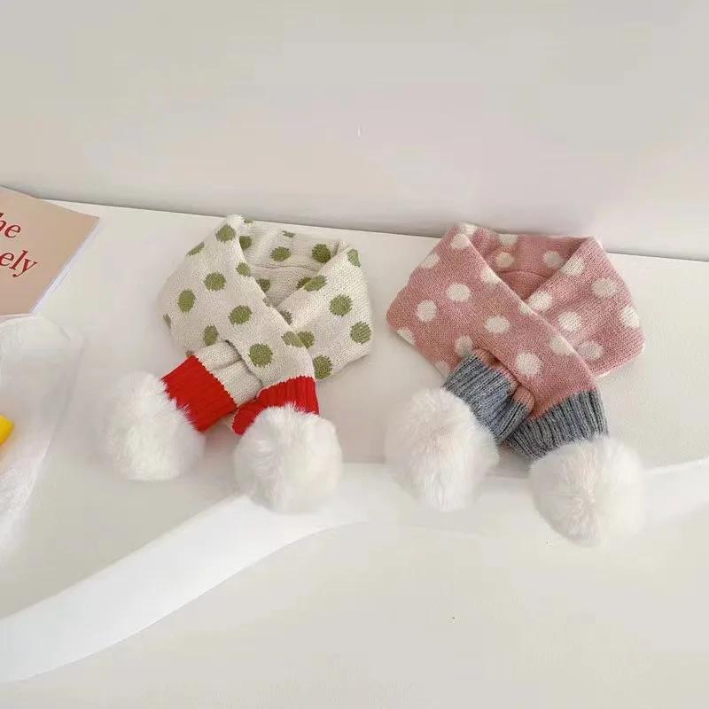 Мягкий помпоновый детский шарф, зимние теплые детские вязаные шарфы для мальчиков и девочек от 1 до 6 лет, шейный платок с крестообразным принтом в горошек, детский воротник
