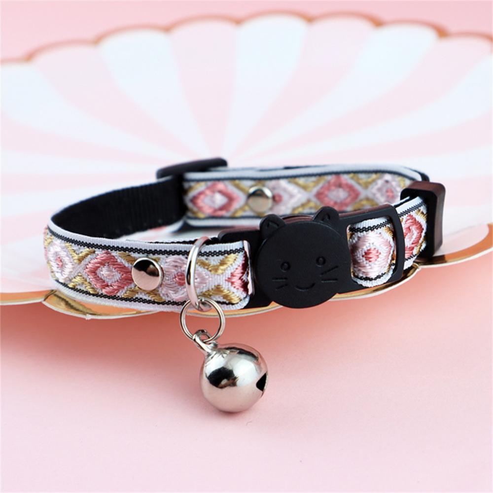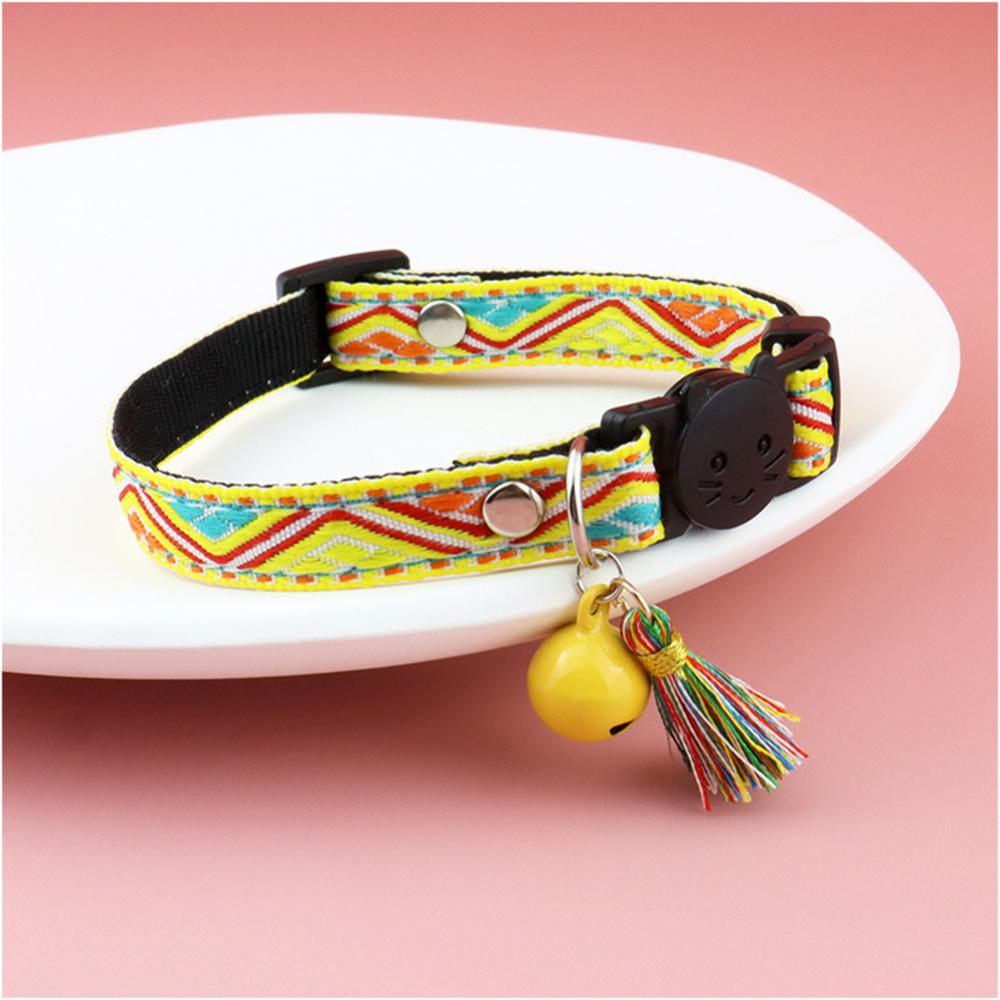 Кошачий ошейник Товары для питомцев Защита от удушья Этнический жаккард Безопасное ожерелье Регулируемый кошачий ошейник с колокольчиками