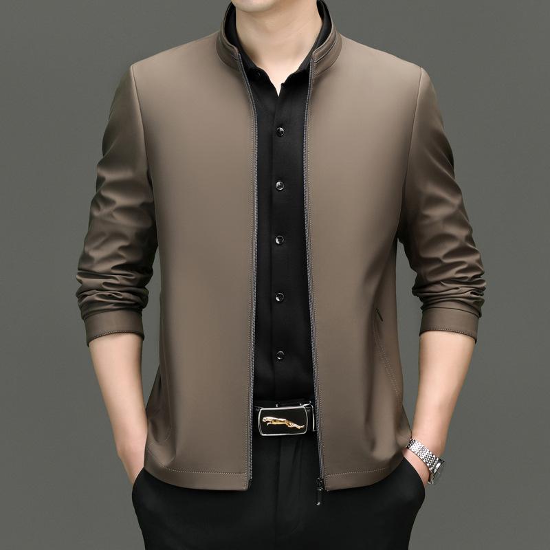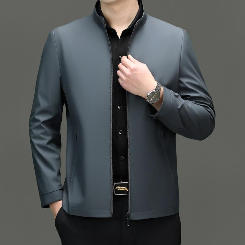 Шелковая куртка Zhengmulang, мужская, деловая, с воротником-стойкой, административная, кадровая, для пап, повседневная куртка на весну и осень