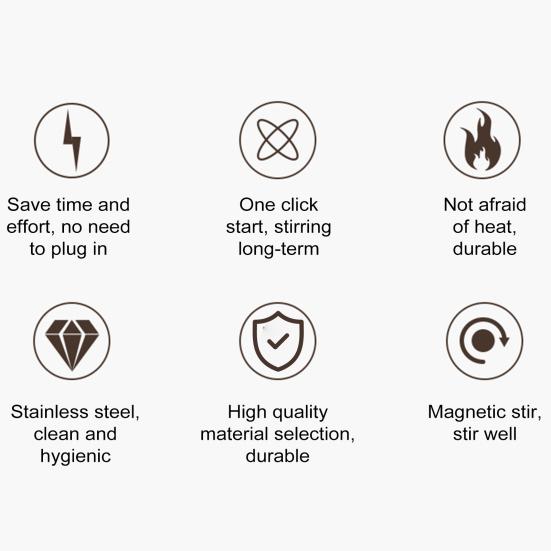 Прочный дизайн: Изготовленная из высококачественных материалов, эта автоматическая магнитная мешалка для кофе рассчитана на долгий срок службы и надежность.. Прочная конструкция обеспечивает стабильную работу в течение многих лет, подходит для ежедневного использования дома, на работе или в дороге.