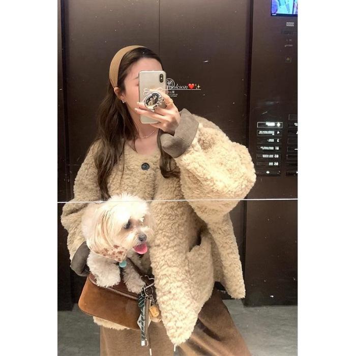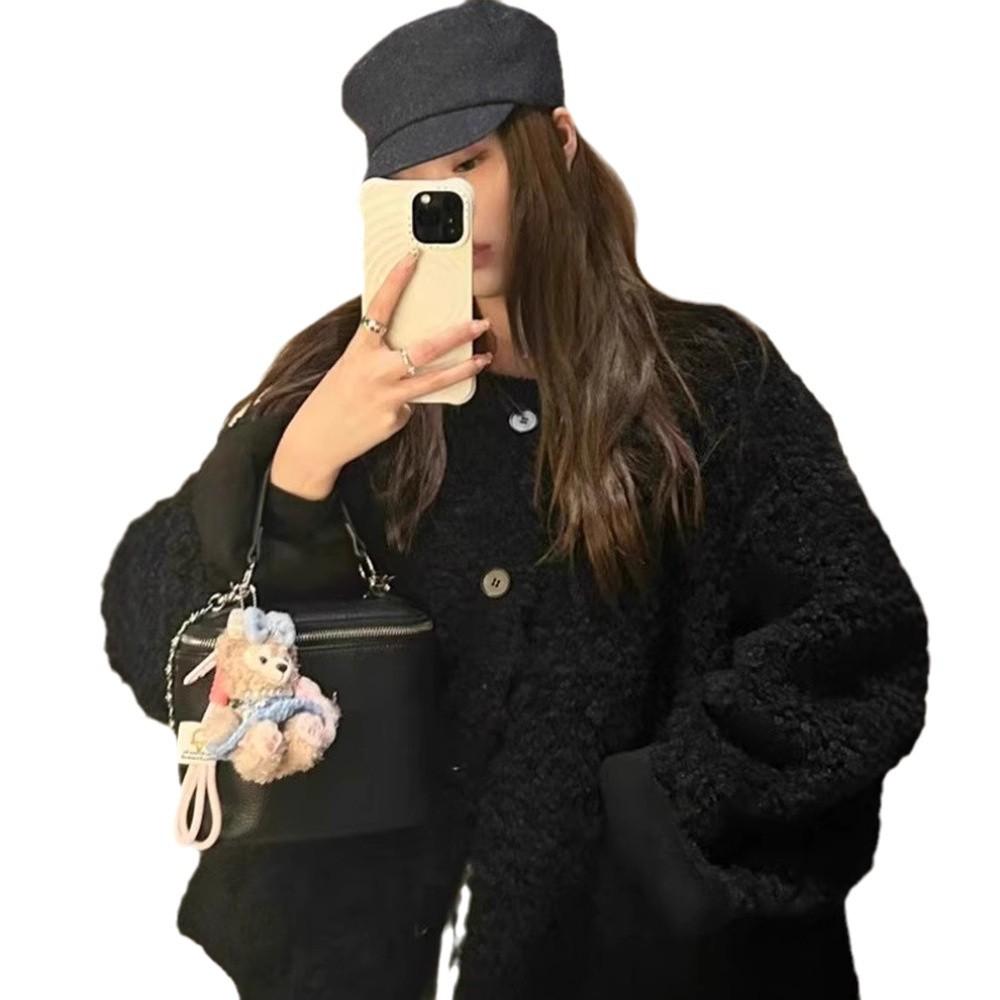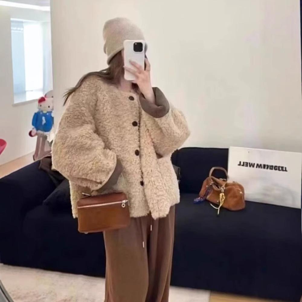 Куртка из экологически чистой овечьей шерсти Lazy Wind, женская, осенне-зимняя, короткая, свободная, с утолщенным мехом, встроенная, повседневная, замедляющая старение