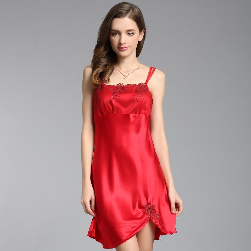 Шелковая женская шелковая ночная рубашка-комбинация, летняя сексуальная пижама из 100% шелка, мини-платье для сна, женская одежда для сна, платья, кружевное нижнее белье
