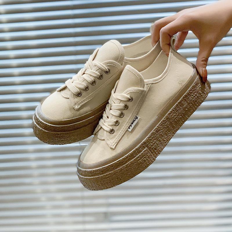 Весенние женские парусиновые туфли небольшого размера 2024 года, летние новые повседневные удобные универсальные кроссовки с толстой подошвой, женские
